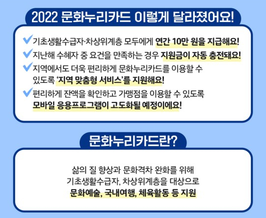 [2022년 문화누리카드 이렇게 달라졌어요.]