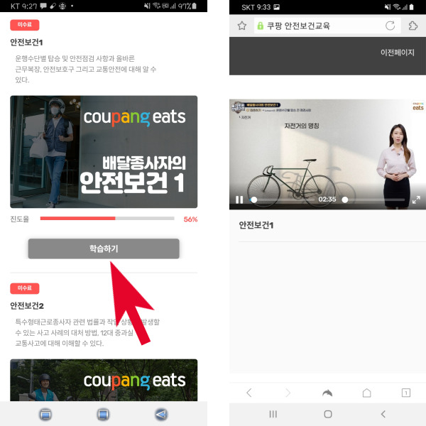 쿠팡이츠 배달 안전교육 시청하는 방법을 알려드릴께요.