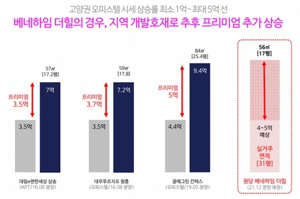주변 오피스텔 분양가 대비 현재 시세를 비교해보면